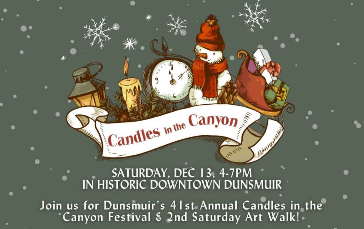 Join us for a festive winter holiday celebration and our 2nd Saturday artwalk in beautiful downtown Dunsmuir! Shopping, delicious restaurants, art galleries and more.